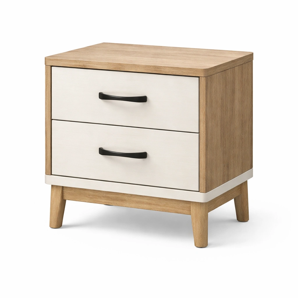 Mesita de noche de madera MDF roble y blanco con 2 cajones