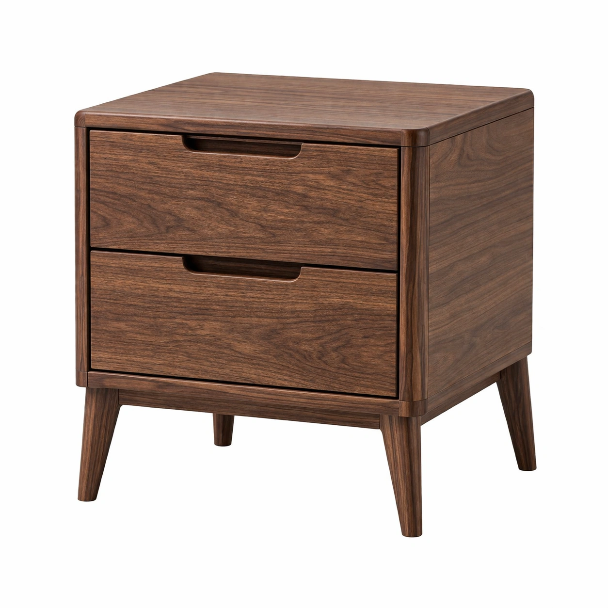 Mesita de noche de madera con detalles de ratán y 2 cajones
