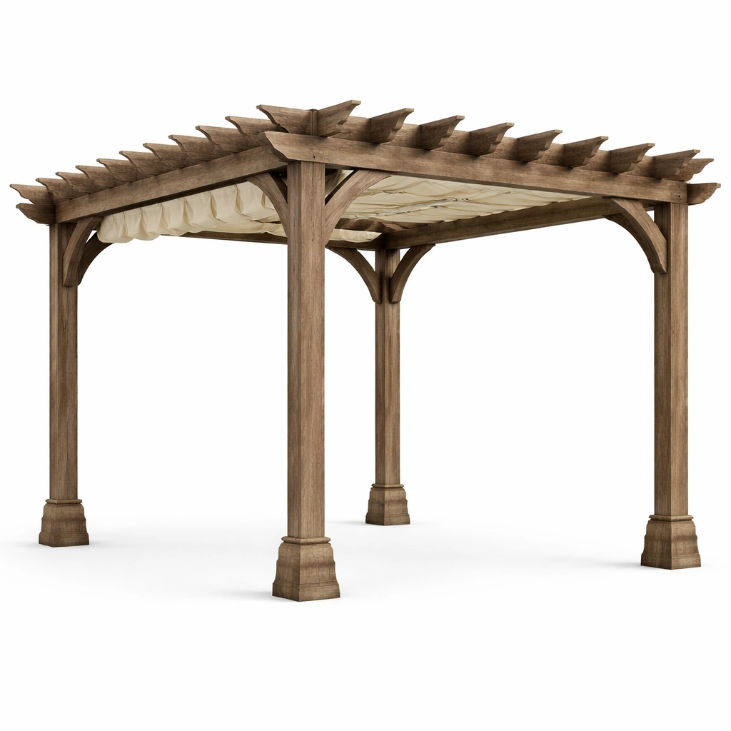 Pérgola de madera con toldo retráctil 300x300x250 cm