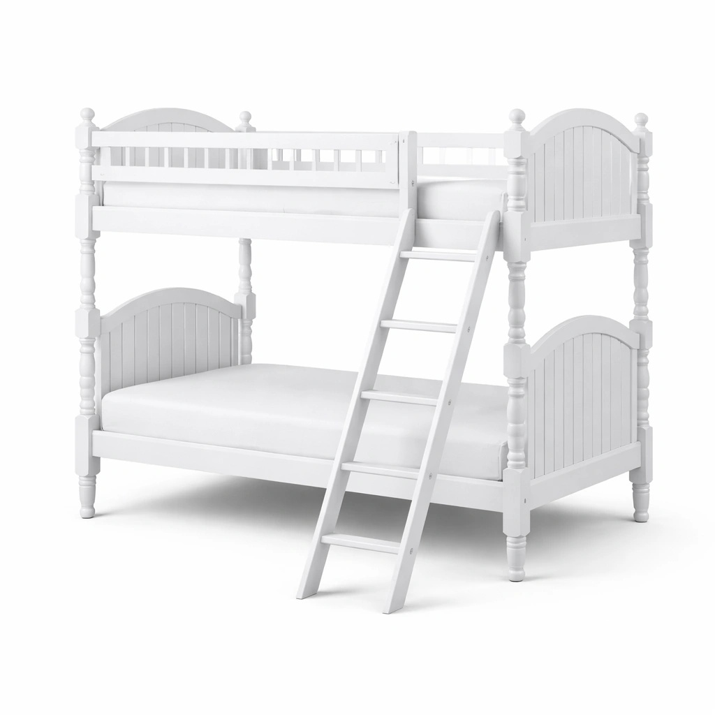 Litera fabricada en madera maciza, adecuada para uso en interior. Incluye una escalera extraíble que se puede colocar a ambos lados.
